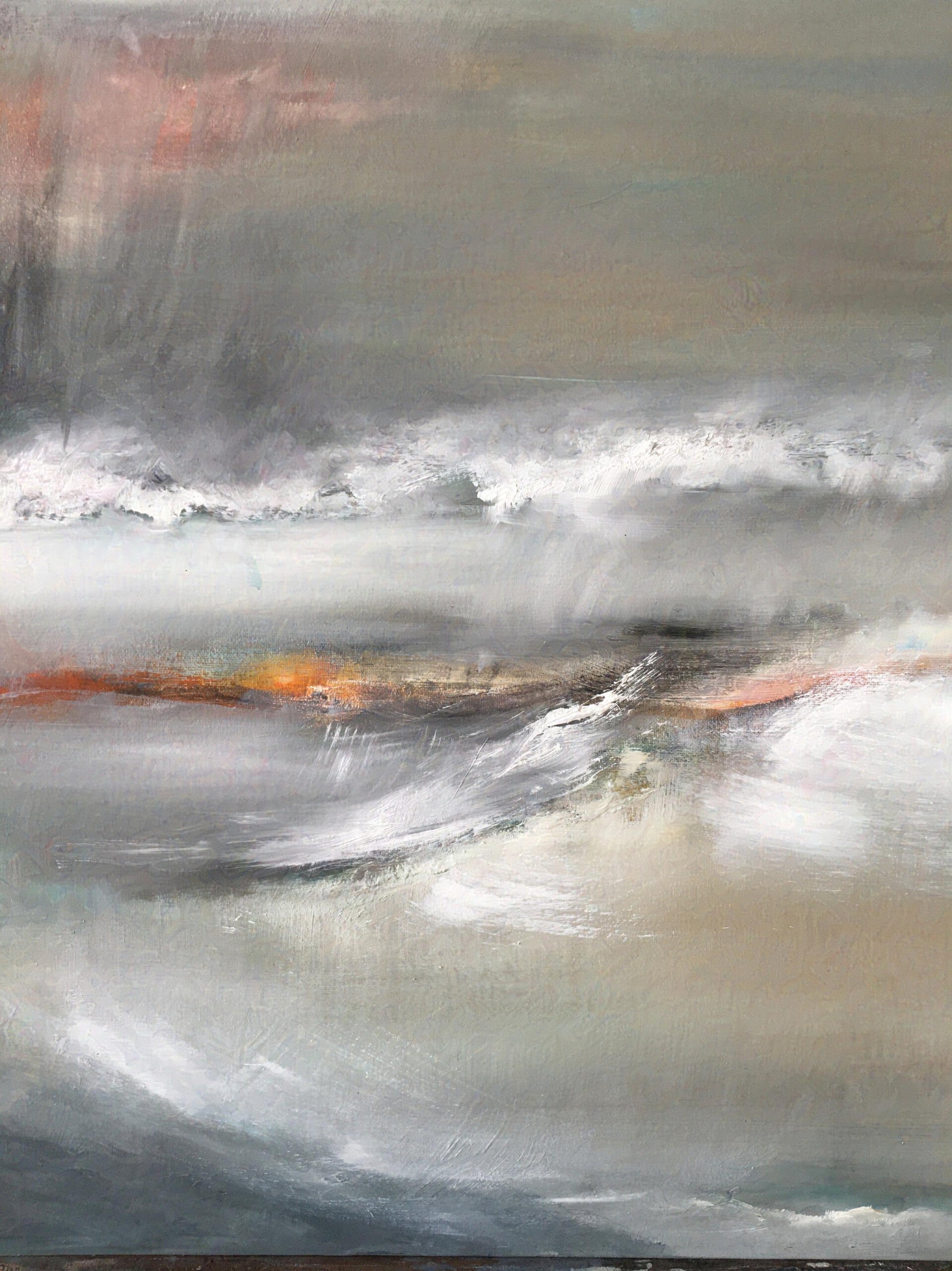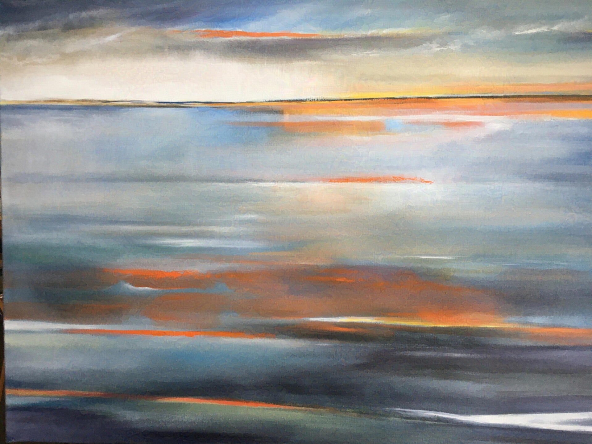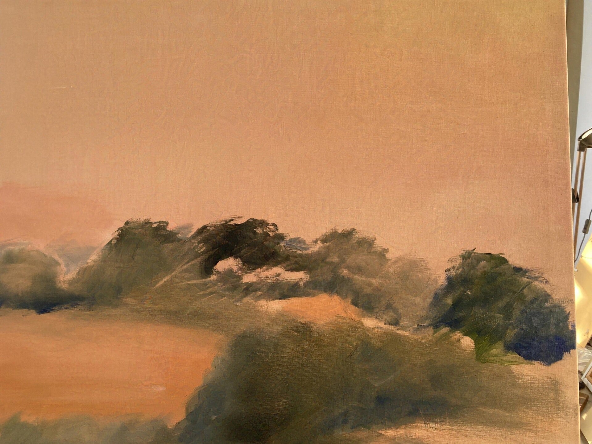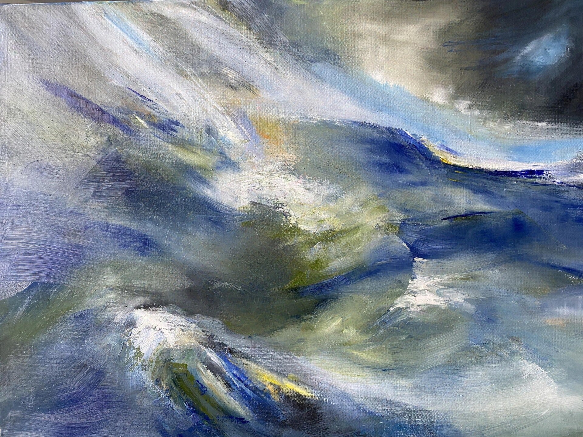 La peinture me permet de transcrire librement ce que les paysages éveillent en moi. Je pars toujours d’une réalité : un ciel, une lumière, une ligne d’horizon. Puis l’imagination prend le relais. Mes années de transhumance m’ont appris combien la lumière varie d’un pays à l’autre. En Normandie, où je vis une grande partie de l’année, les contrastes entre mer, campagne et les ciels changeants sont une source d’inspiration inépuisable. J’explore les ambiances, les nuances chaudes et froides, dans un travail à l’huile qui vise autant l’évocation que la mémoire sensorielle.